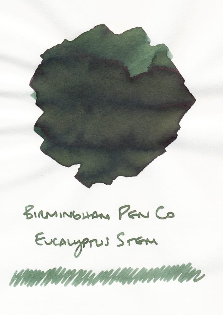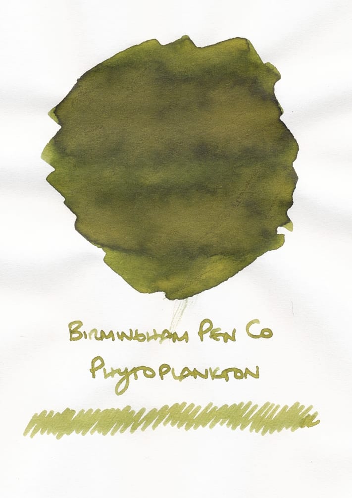 I was also able to get samples of 4 Birmingham Pen Company inks – Phytoplankton, Eucalyptus Stem, Shower Scum, and Lampshade – in this swap, which is nice, since Birmingham Pen Company doesn't offer samples themselves, and sells their inks in huge bottles, so I kind of want to know if I'll like the inks before buying.