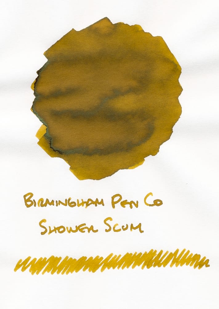 I have this other ink sample from Troublemaker called Tuslob Buwa, which reminded me of the swatches of Shower Scum from BPC's site, but now that I have seen Shower Scum in person, Tuslob Buwa seems a tamer, possibly more usable ink for me because it leans more brown/khaki than this sickly yellow/green/brown. 😝 But, I'll try Shower Scum in a pen at least once, because swatches aren't necessarily the most accurate representation.
