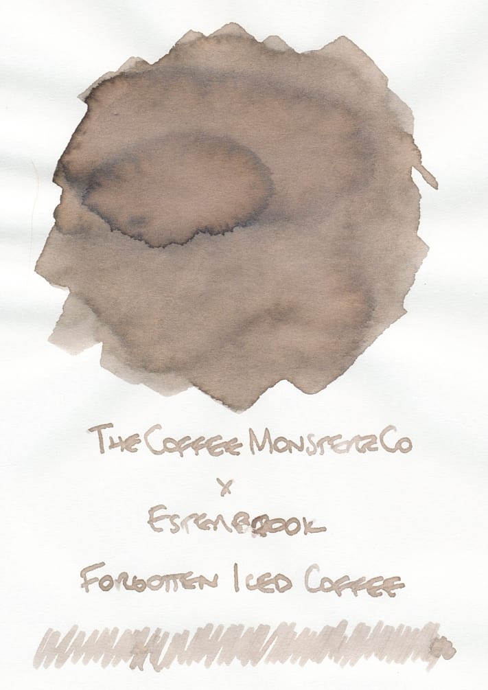 This is an odd ink because it goes on quite light and looks very gray, like, "hmmm, how is this a coffee-related shade?" But then as it dries, the gray turns into a cool taupe, which I guess is the shade of an iced coffee after the ice has melted quite a bit. 🙂 This color doesn't quite match the brown tones in the LE Estie fountain pen, which is interesting. I wonder why they went this taupe route? I kind of like that it's an odd, in-between color, though. I'll see how legible it looks when it's in a pen. Probably will need a broader, wetter nib to get it to show up best on the page.