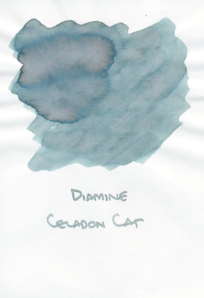 Robert Oster Chicago looks similar, but is more saturated and less dulled by green undertones. Celadon Cat looks more translucent in the swatch and has more green. And Diamine Don't Trust a Bivalve is more what I think Cold Snap II would look like without the green tones.