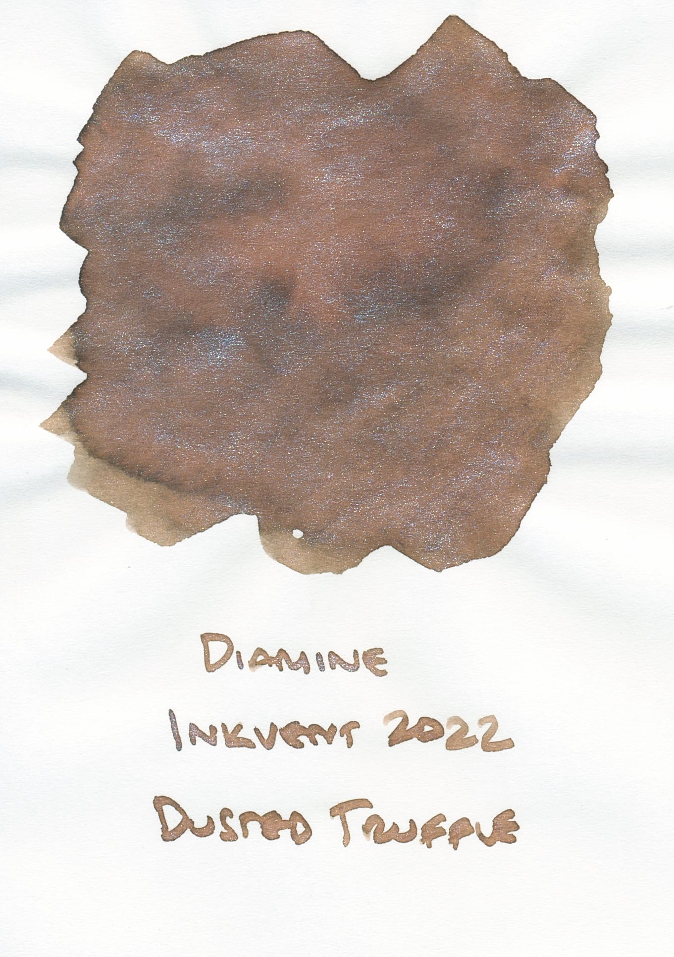 Diamine Dusted Truffle looks way off, but in reality, at some angles, the silver shimmer makes its lighter brown base look cool enough to be a lighter, less saturated version of Megalodon (if you squint really hard 😆).