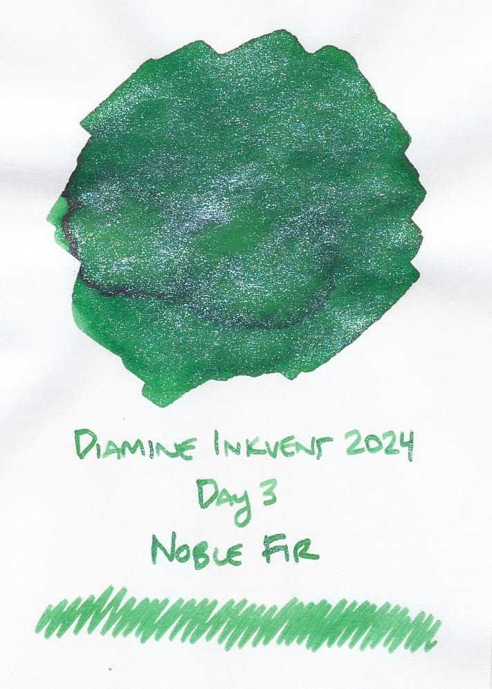 Noble Fir's bright green reminds me of last year's Inkvent ink, Merry & Bright (which for whatever reason makes me think of Marvel Loki's costume), but it has a regular amount of champagne shimmer, instead of a metric ton of silver shimmer in the Star Bright ink Noble Fir. ✨ This kind of bright green is not usually my thing, but...open mind. 🧘♀️