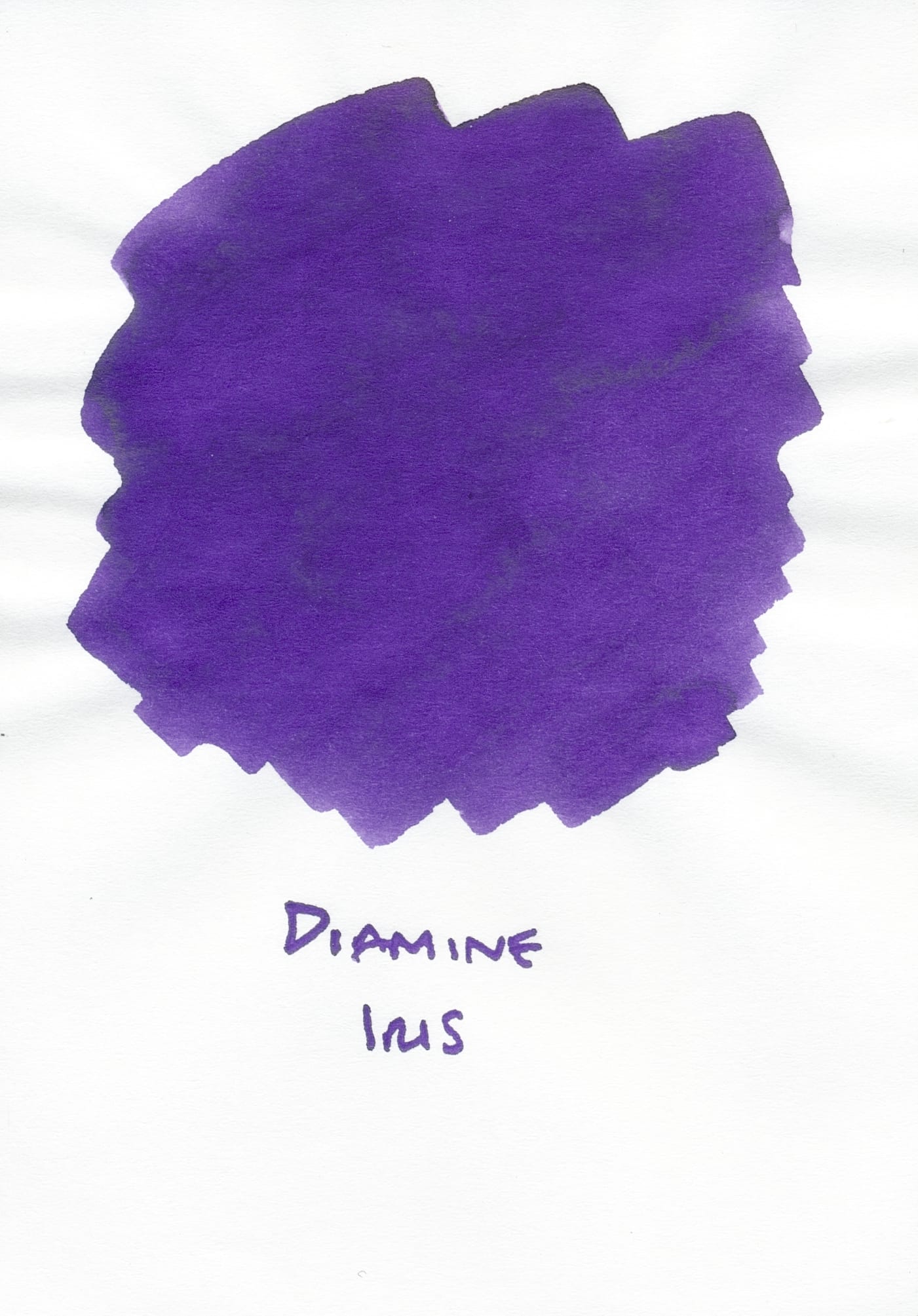 We already saw one comparison that is ultimately quite off. The other ink that came to mind was Diamine Iris, but it's too saturated and bright in comparison. It also leans too violet to my eye.