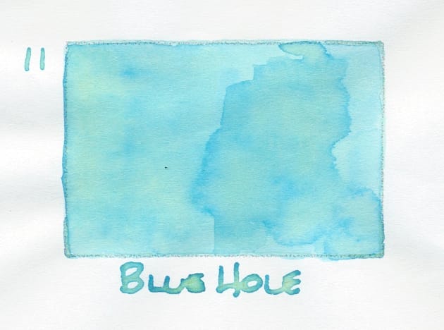 This translucent chromoshader is a pleasant surprise. I was kind of disappointed looking at the ink in the bottle, because I'm not generally a fan of bright, aqua blues. The yellow (and green?) chromoshading totally changes the ink, adding interest and depth. Apparently in last year's Colorvent, there was another multishader called White Hole, so I guess this continues the theme. I wonder if anyone's willing to part with their bottle of White Hole (and Da Vinci Glow and Sailing Stones)? 🤔