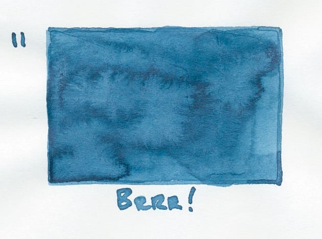 "Brrr!" is a fun ink name. Even the label is in a different font to single it out. 🙂 This is a pigment shimmer ink, which I thought they might do. I'm still quite wary of pigment inks in general because of how much harder they can be to clean out of pens. I tend to have lots of pens inked up at the same time, so it would be more than likely that if I put a pigment or pigment shimmer ink into one of my pens, it could dry out and become rather difficult to clean. I would probably use my Sailor Hocoros or the Fonte "glass" dip pen to write with Brrr!, should I want to write with it, to be on the safe side.