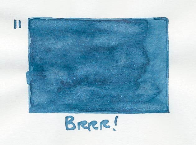 Left: Diamine Brrr!, right: Diamine Brrr! without shimmer Kinda hard to see the difference since the shimmer is not too different from the base ink.