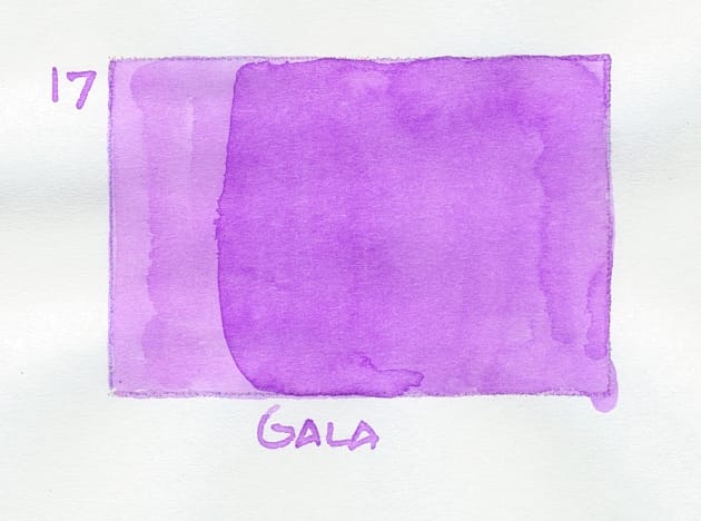 I definitely prefer bluer, cooler purples, but Gala's red-/pink-leaning violet is still appealing to me. It feels like a great ink for the upcoming spring. When the ink is still wet, it's more pinkish, but then it cools and mutes down slightly to the pink-violet in the scan. Not too much more to say; it's a pretty ink. 🤷♀️