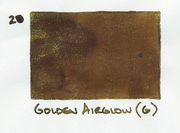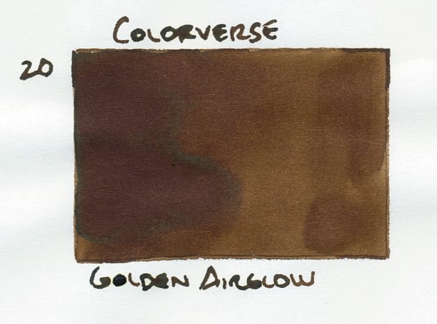 Regular readers probably know that Golden Airglow, being a brown-based ink, appeals to me. 😅 The brown goes on a little bit warmer, like a milk chocolate color, but ultimately dries to a cooler brown.