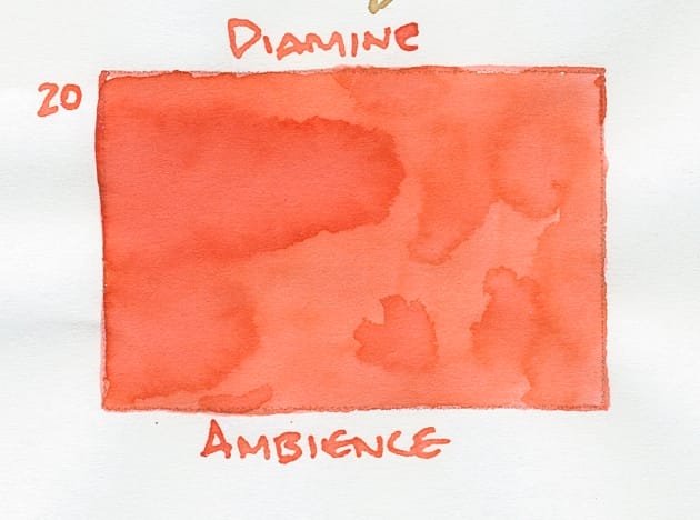 I was reminded of Diamine Fruit Cocktail from last year, but I think Fruit Cocktail is more orange and lighter (and it's a scented ink that's very wet). Someone else mentioned that Ambience looks similar to Celebration from a few years back.