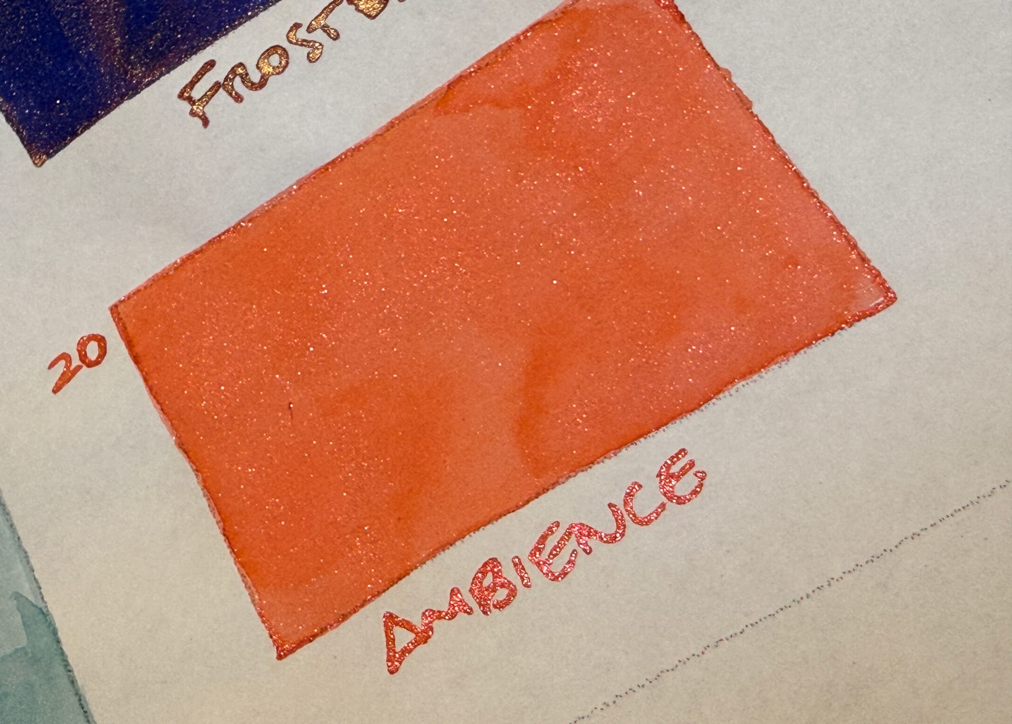 I was surprised at how much shimmer was in the bottle. When I did a small dip with my glass nib, it felt like I was writing with a shimmer paste...!