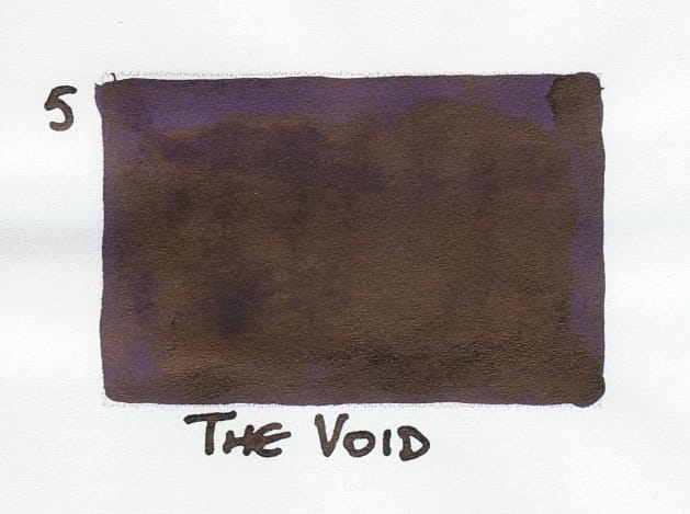With a name like The Void, it was clear the ink was going to be really dark. When I first swatched it, it looked like black with a brown or gold sheen, but seeing the scan, it appears to be a really dark blue or blue-purple. It's also pretty wet compared to the previous inks, so perhaps this is a sheening ink? Either way, not for me.