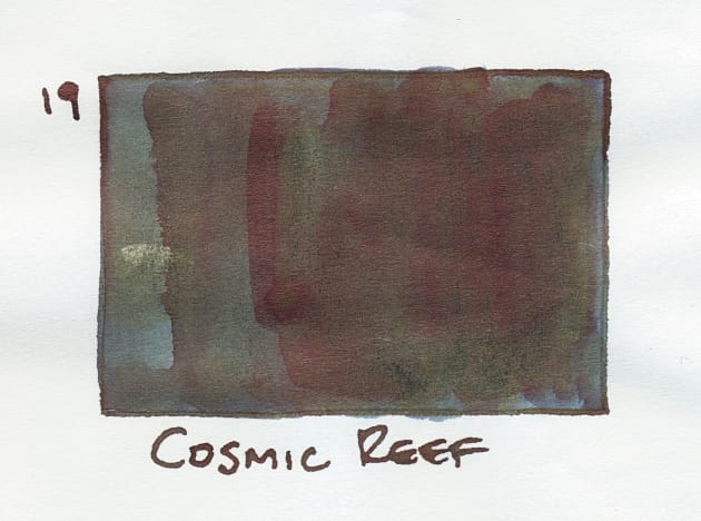 For week 3 of Colorverse, I prefer Polar Night the most, but I am concerned that in regular writing with a fine nib, it'll be too light. I have not yet filled a pen with it to confirm. I really like the chromoshading, though. Golden Airglow is my second choice. It's a decent brown (maybe slightly too dark for my tastes, but it's fine) with lots of pretty gold shimmer.