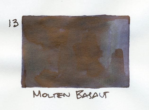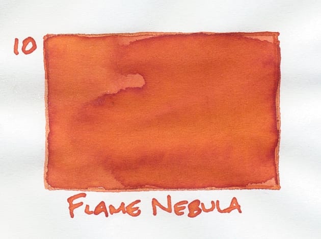 Out of the Colorvent inks, my top favorite is Flame Nebula, a great red-orange true to its fiery namesake; followed by Blue Hole, a light blue with surprising yellow chromoshading; and Snow Angel, a cozy, kind of hot chocolatey brown.