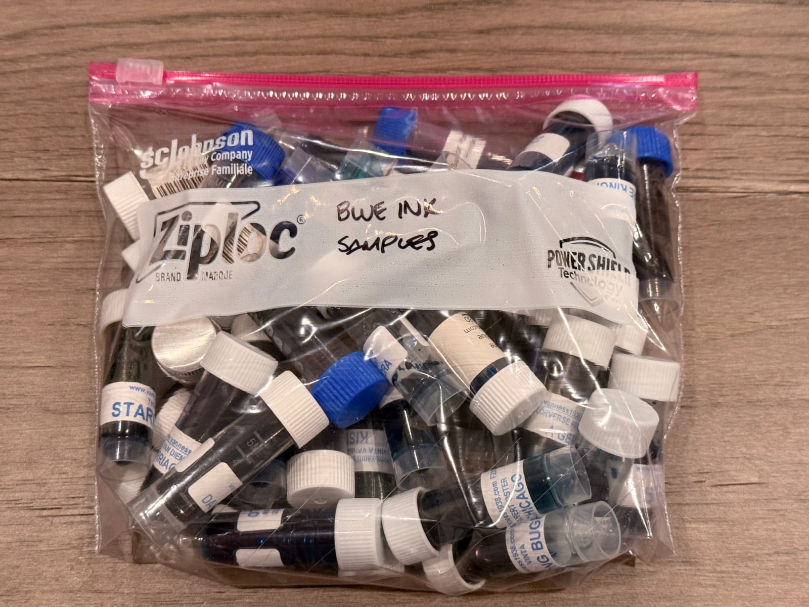 For a while I kind of forgot about this project, but I saw a thread about sample organization a while ago where someone said she just uses Ziploc bags because they take up less space. I figured that for version 1.0 of my sample organization, that'll do fine. My office is far from being set up properly for all my hobby stuff, so this simple solution suits me for now.