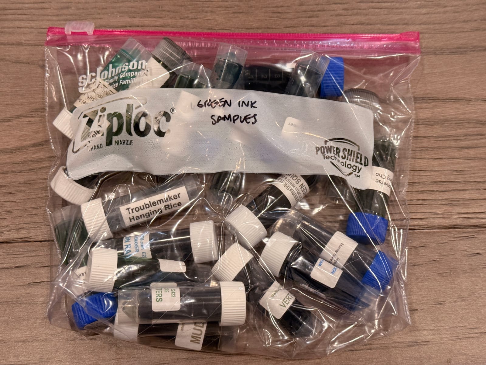 I was, however, surprised by how many reds I have, though that's because I was briefly on a search for a good red, probably for Christmastime. I generally don't want to write with red inks due to my inability to find a red ink I truly like. A few of the samples in that bag are nice enough for me to want to use them...someday.
