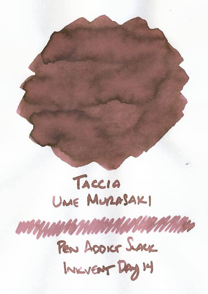 Taccia Ume Murasaki is quite an odd ink. The swatch doesn't look too odd, per se, a rosy brown color. However, when I swatched it, it was more rosy when wet, then dried to a brown, and almost looked kind of like it was a time lapse of fruit spoiling? At least, that's the thought that I had at the time. 😅 The color change during drying surprised me since I didn't know its final color, but I'll have to see how it performs in a pen. Regardless, it's an intriguing shade. I think I'd seen some other swatches online that did not look like the swatch I made, so I wondered if perhaps it was swatched on different paper, or maybe the posted swatches weren't color-corrected the same? That is a confusing thing when you see a swatch online that doesn't match the real-life appearance, for whatever reason.